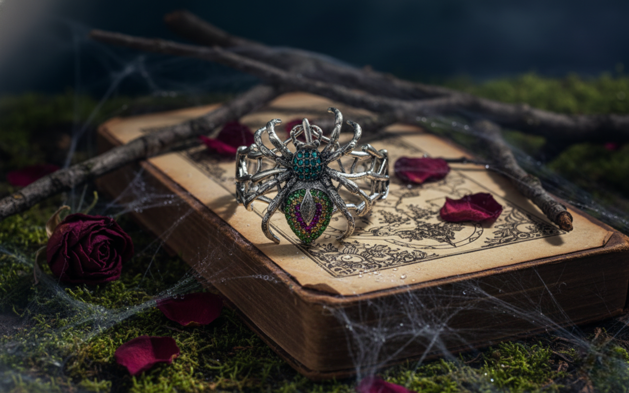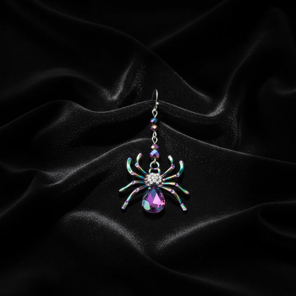 Iridescent crystal spider design that captures the light and commands attention — bold, gothic, unforgettable.
